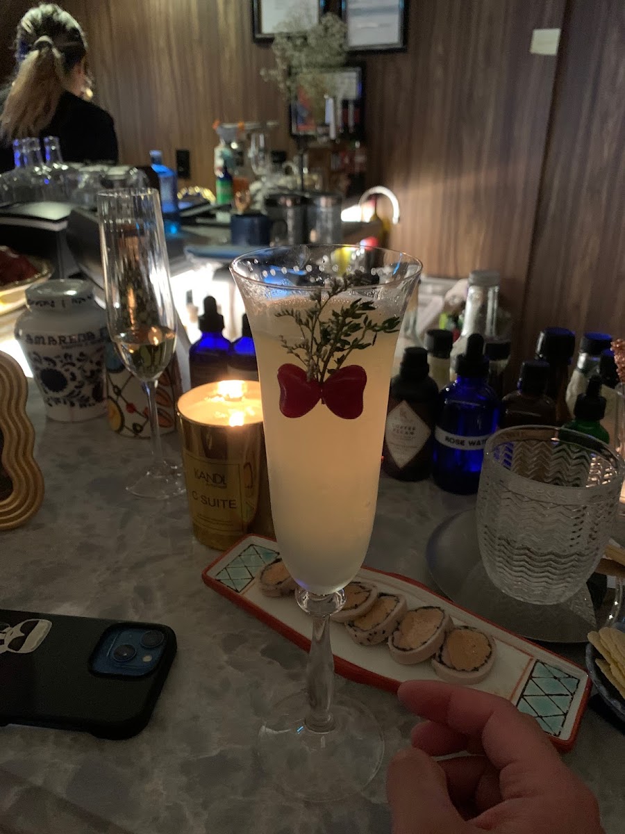 An upscale cocktail bar in the heart of Yorkville, C-suite nevertheless feels like an escape— a brief weekend trip away from the city. Immediately upon entering you are struck by the lovely scent of dozens of candles, the Orient-Express inspired decor, and warm lighting that bathes the setting. The cocktails are elaborate and excellent, taking advantage not just taste but every sense, in the Space Mule: smells of citrus and fresh cinnamon, gentle crackles of embers, and a bombastic visual presentation compliment the rich and surprisingly complex flavours. For those that prefer to keep it simple, they have an extensive whisky menu, which I had on the rocks paired with a beautifully carved sphere of ice. As you had your drinks, there was pleasant music throughout the night, at a reserved volume that clearly implied spurring flowing conversations were the main goal of the setting. The service was truly excellent, the servers knowledgeable, friendly, and very professional. Overall C-Suite is a truly one of a kind experience with its decor, cocktails, and vibe all being idiosyncratic and excellent. I would note that the prices for their signature cocktails were somewhat eye watering on first glance, and it certainly is an upscale option, but when witnessing the bartenders make your drink you do get the sense that to the extent that anything justifies a $40 cocktail, the time, skill, and passion put into not just the drinks but the whole experience by their staff certainly would. I would recommend C-Suite to anyone that enjoys cocktails, particularly as a place to end off the night of a memorable event such a birthday, anniversary, or other celebration that you do not want to forget.